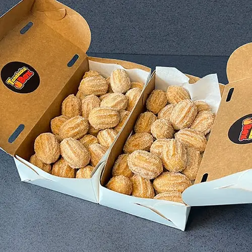 100 Unidades - Mini churros recheados com doce de leite premium, de alta qualidade. Super crocantes e com uma massa leve.